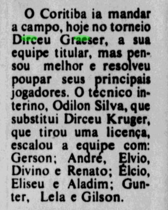 Já nos anos 70, Dirceu Graeser, indo trabalhar no Coxa, onde atuou até 1972. No Cori, tinha “pleno poder” outorgado pelo então presidente Evangelino da Costa Neves, campeoníssimo dirigente coritibano.