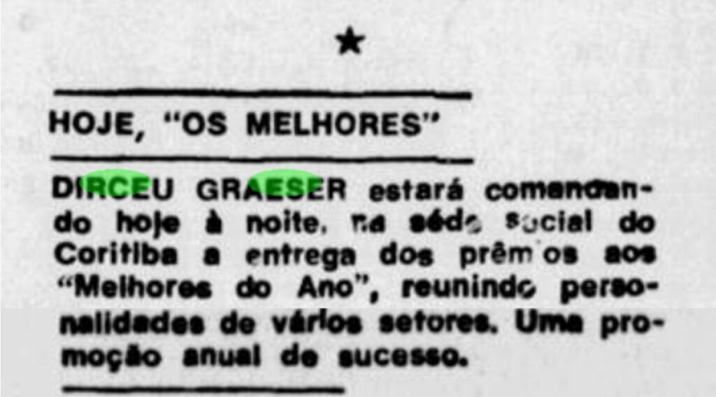 Você sabia que Dirceu Graeser torcia pelo Coritiba? Sim, isto mesmo: Dirceu Graeser, um musicista e comunicador de rádio e TV, que teve grande destaque no cenário nacional, torcia pelo Coritiba.