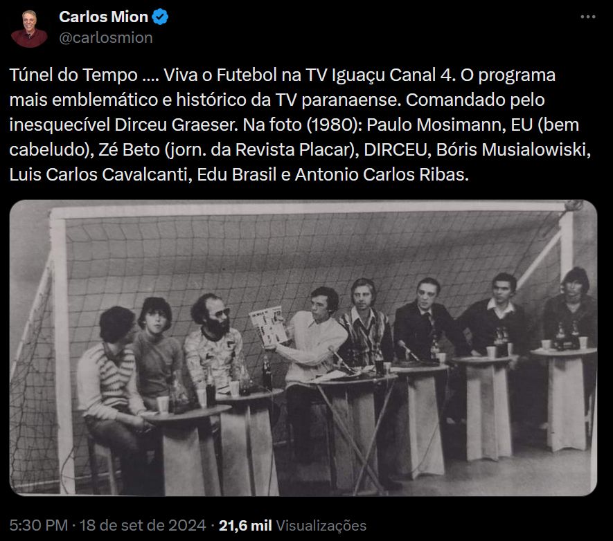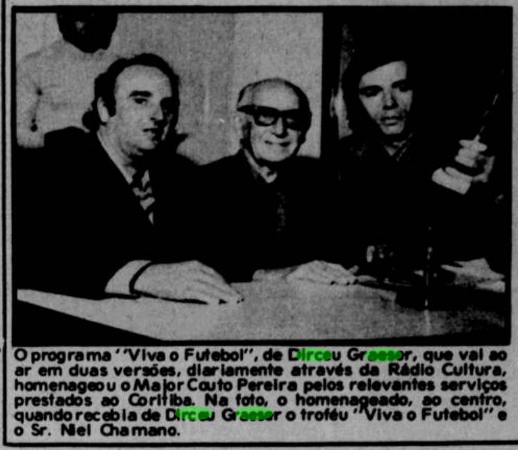 Justamente foi no “Viva o Futebol” que, em 1974, Graeser prestou uma homenagem a outro grande dirigente Coxa-Branca, o ex-presidente Antônio Couto Pereira.