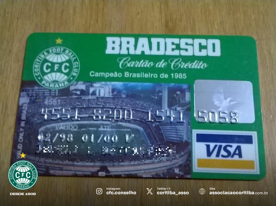 Os cartões de crédito personalizados com uma imagem aérea do Estádio Couto Pereira lotado [uma hipótese é de que a foto tenha sido registrada durante o AtleTiba de 1º de maio, Dia do Trabalhador, de 1990, vencido pelo time do Alto da Glória por 3×0].