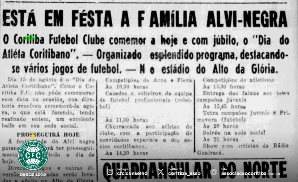 Você sabe o porquê do “Dia do Atleta Coritibano”? Veja a postagem do Blog do Couto e conheça mais sobre esta página vitoriosa na história do Coritiba.