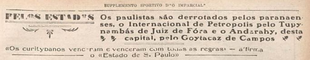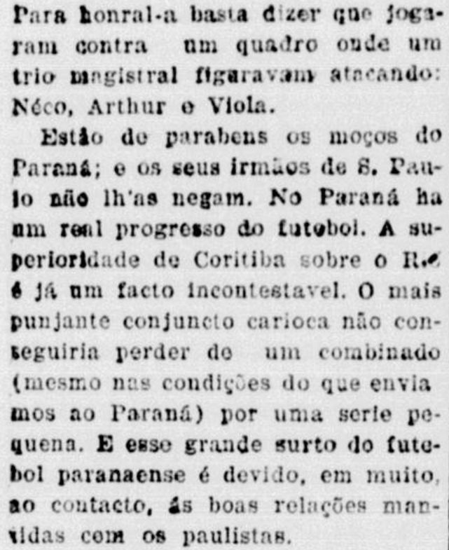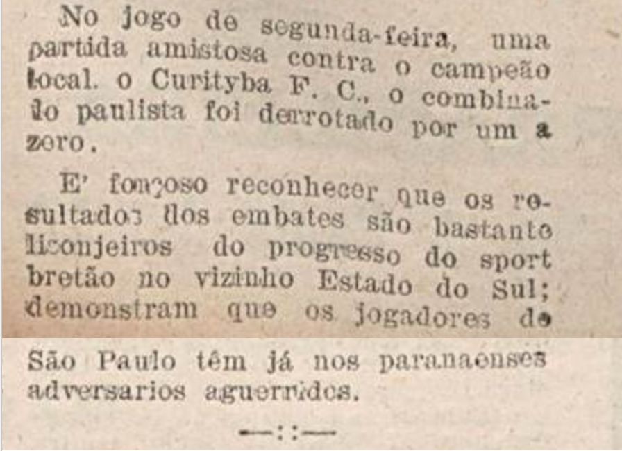 Importante dizer que aquele jogo foi a terceira vez em que o selecionado de São Paulo atuava em Curitiba (O Imparcial Ano 1921\Edição 0025, 20/08/1921). Para muitos, na época, São Paulo era o principal centro futebolístico do país. Nas duas oportunidades anteriores, a primeira contra um combinado curitibano, a vitória paulista por 8×1. A segunda apresentação do selecionado paulista, na capital paranaense, ocorreu no dia 14/08/1921, pela disputa da Taça Affonso Camargo. Ao final, vitória do selecionado paulista por 2×1 contra um selecionado paranaense, quando Fried fez a diferença e os visitantes viraram o placar.