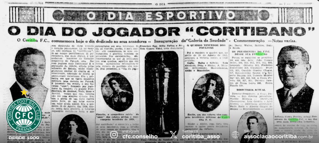 Dez anos depois, em 1931, a comemoração pelo “Dia do Atleta Coritibano”
