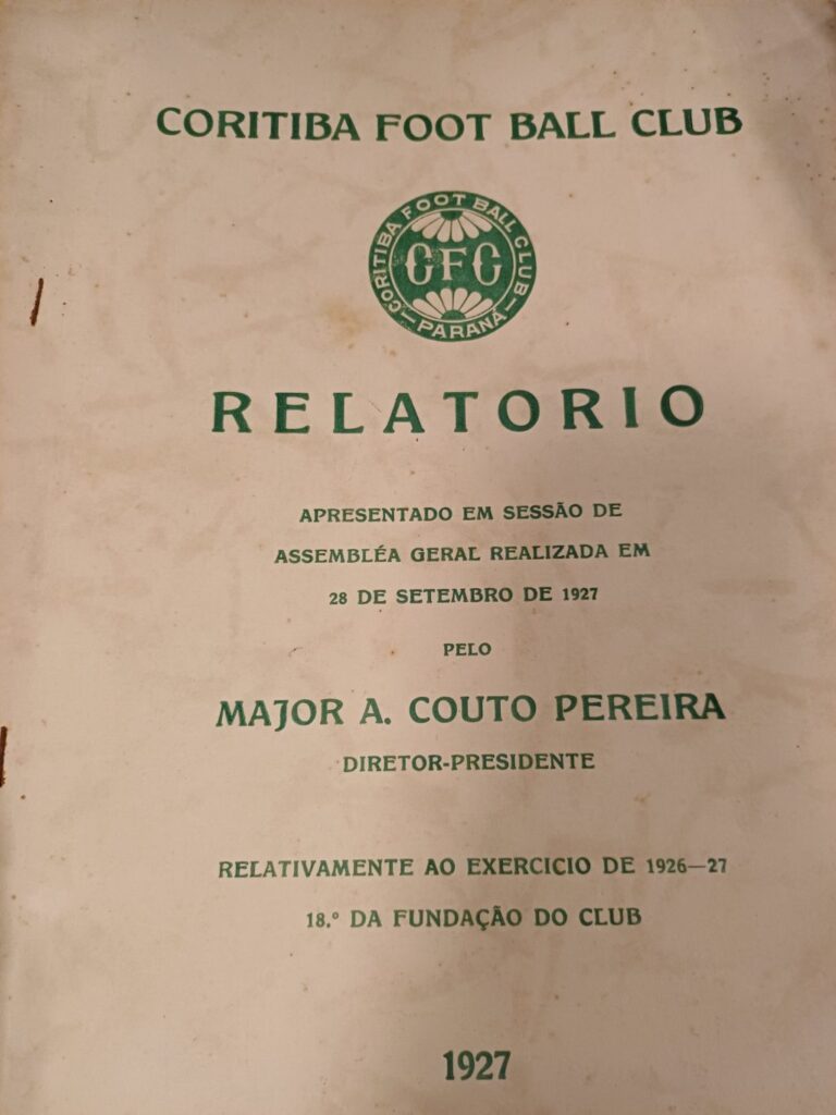 Com a continuidade dos trabalhos de pesquisa histórica, no dia 10/01/2026, integrantes da Comissão identificaram em um exemplar do Relatório relativo ao exercício de 1926-1927. O documento foi então apresentado em sessão de Assembléa Geral realizada em 28 de setembro de 1927 pelo Major A. Couto Pereira, então diretor-presidente do Coritiba.