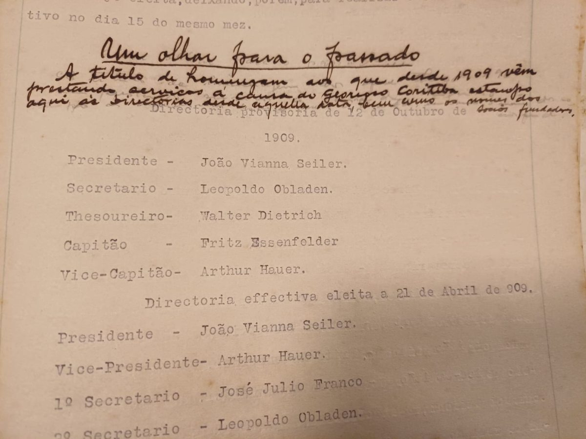 No ano de 2025, integrantes da Comissão de Preservação da Memória e da História do Coritiba Foot Ball Club encontraram um documento manuscrito com um título “Socios fundadores [do Coritiba]” e relacionava nomes de inúmeras pessoas.