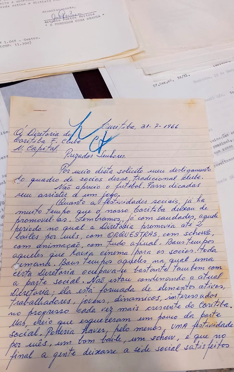 Denominado “Memórias Coritibanas”, o projeto faz parte de um convênio firmado pela diretoria do Coxa com a UFPR, com objetivo primordial de melhorar as condições de guarda documental e incentivar a pesquisa histórico sobre o Coritiba e sua relação direta com o Município de Curitiba. O projeto tem vínculo com o Conselho Nacional de Desenvolvimento Científico e Tecnológico – CNPq.