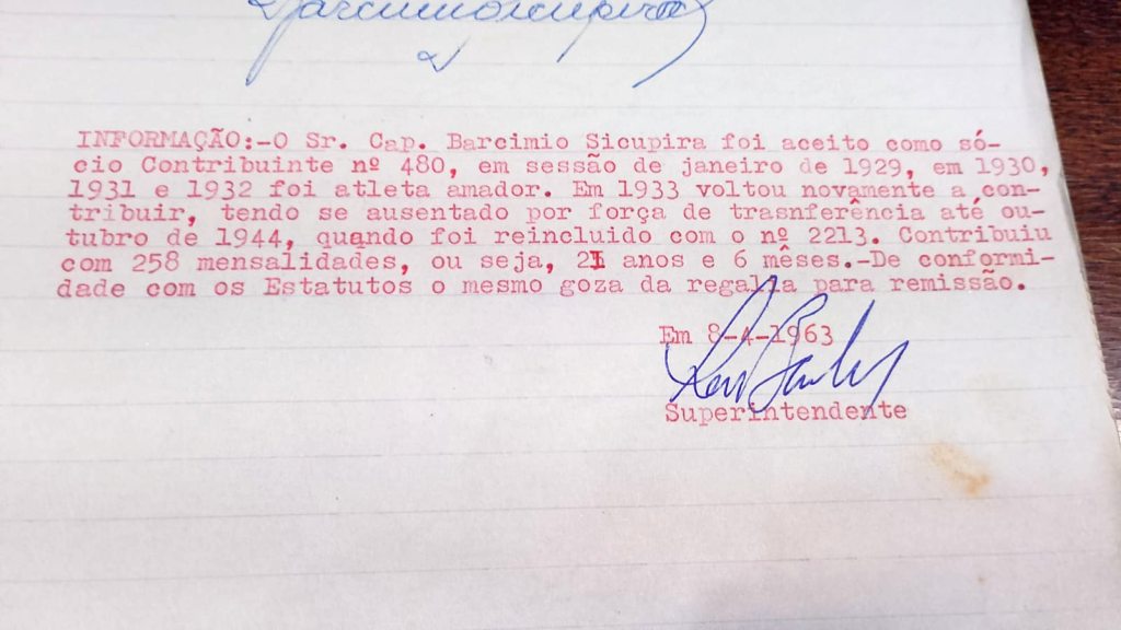 Integrantes do grupo de pesquisa da Universidade Federal do Paraná encontraram os documentos relativos à associação de Barcimio Sicupira no Coritiba Foot Ball Club. Compõe esse grupo de pesquisa, alunos e alunas da graduação e da pós-graduação daquela Universidade.