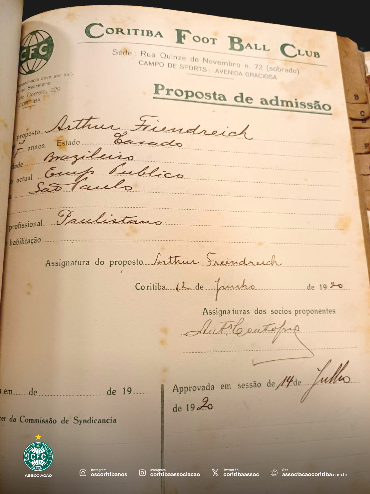 O craque Arthur Friedenreich foi sócio do CoritibaO craque Arthur Friedenreich foi sócio do Coritiba